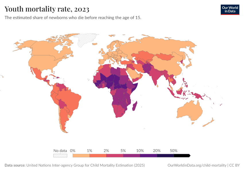 Saloni Dattani, Fiona Spooner, Hannah Ritchie, and Max Roser (2023) - “Child and Infant Mortality” Published online at OurWorldinData.org. Retrieved from: 'https://chrome-plugin.owid.pages.dev/child-mortality' [Online Resource]BibTeX citation