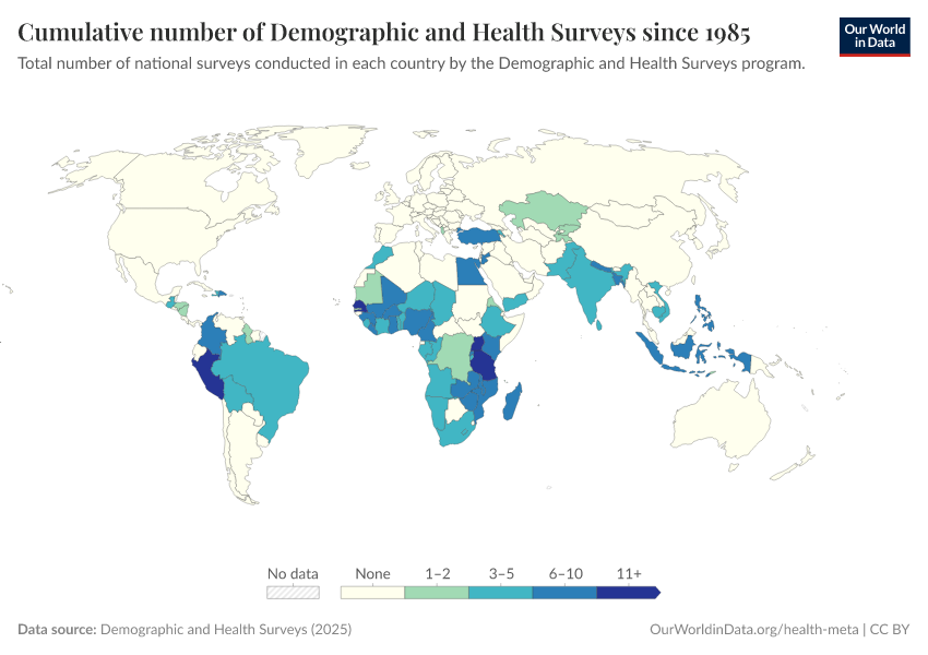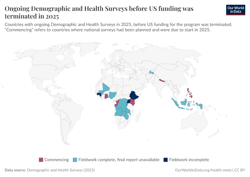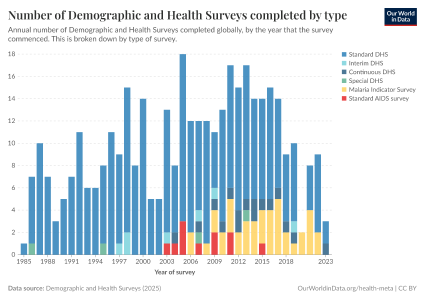Saloni Dattani (2025) - “The Demographic and Health Surveys brought crucial data for more than 90 countries — without them, we risk darkness” Published online at OurWorldinData.org. Retrieved from: 'https://chrome-plugin.owid.pages.dev/demographic-health-surveys-risk' [Online Resource]BibTeX citation
