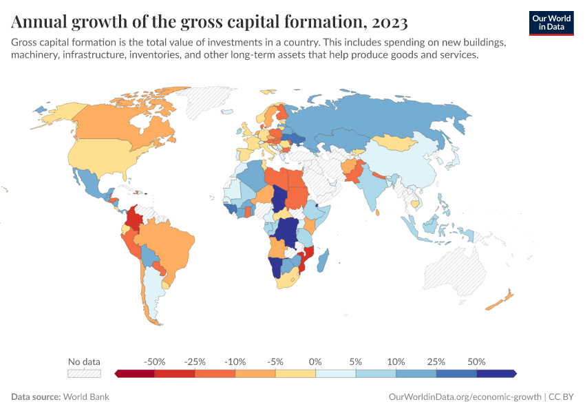 “Data Page: Annual growth of the gross capital formation”. Our World in Data (2026). Data adapted from World Bank. Retrieved from https://chrome-plugin.owid.pages.dev/grapher/annual-growth-of-the-gross-capital-formation [online resource]How to cite this data