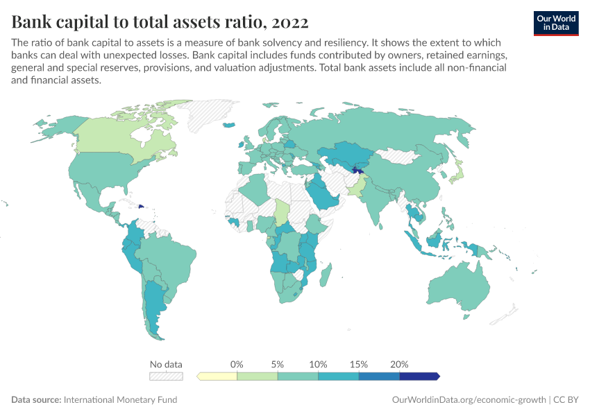 “Data Page: Bank capital to total assets ratio”. Our World in Data (2026). Data adapted from International Monetary Fund. Retrieved from https://chrome-plugin.owid.pages.dev/grapher/bank-capital-to-total-assets-ratio [online resource]How to cite this data
