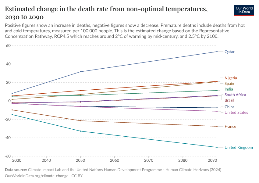 “Data Page: Estimated change in the death rate from non-optimal temperatures”. Our World in Data (2026). Data adapted from Climate Impact Lab and the United Nations Human Development Programme. Retrieved from https://chrome-plugin.owid.pages.dev/grapher/change-heat-death-rate [online resource]How to cite this data