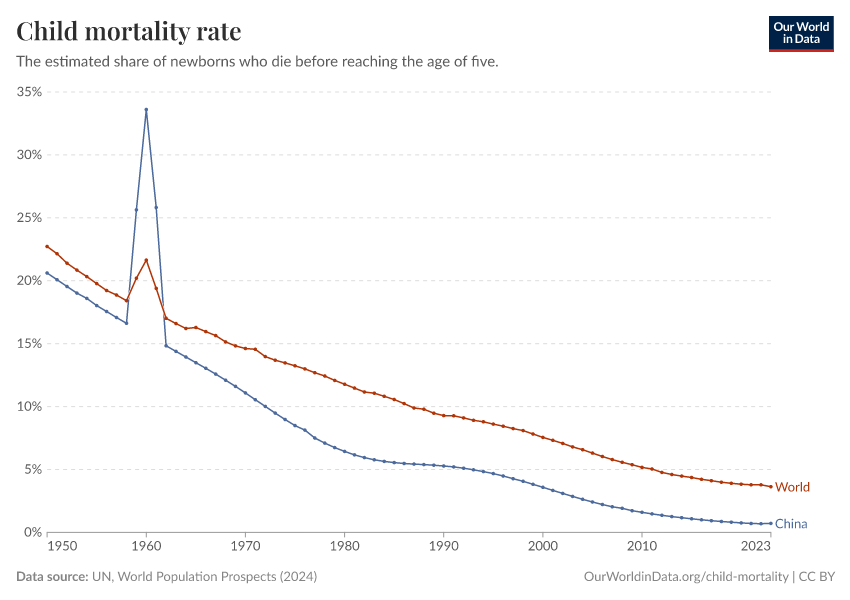 “Data Page: Child mortality rate, ages 0-4”. Our World in Data (2026). Data adapted from United Nations. Retrieved from https://chrome-plugin.owid.pages.dev/grapher/child-mortality-around-the-world [online resource]How to cite this data