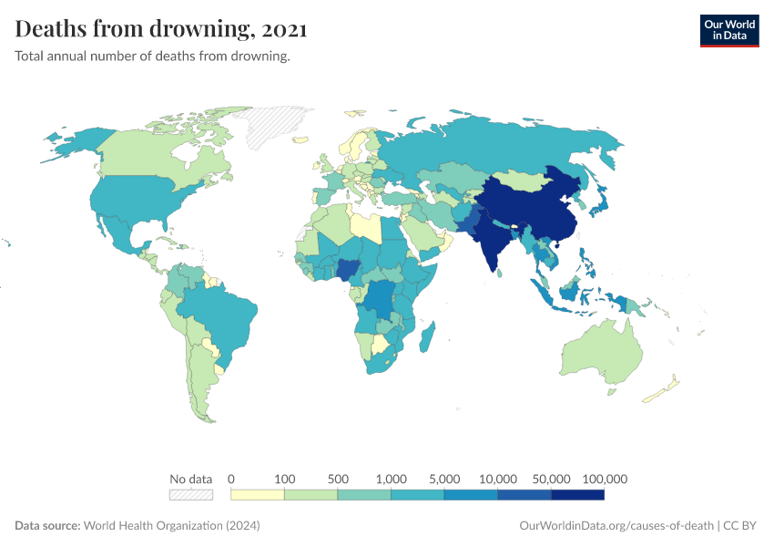 World Health Organization (2024) – with major processing by Our World in Data. “Deaths from drowning” [dataset]. World Health Organization, “Global Health Estimates” [original data]. Retrieved January 9, 2026 from https://chrome-plugin.owid.pages.dev/grapher/deaths-from-drowning-ghe