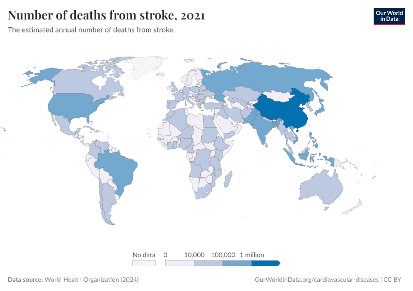 World Health Organization (2024) – with major processing by Our World in Data. “Number of deaths from stroke” [dataset]. World Health Organization, “Global Health Estimates” [original data]. Retrieved January 9, 2026 from https://chrome-plugin.owid.pages.dev/grapher/deaths-from-strokes-ghe