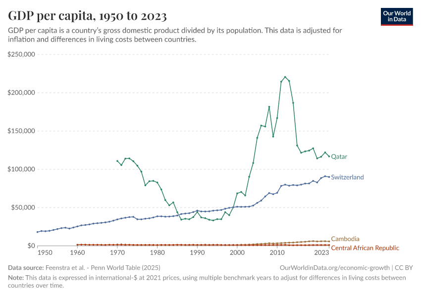 Feenstra et al. - Penn World Table (2025) – with major processing by Our World in Data. “GDP per capita – Penn World Table – In constant international-$” [dataset]. Feenstra et al., “Penn World Table 11.0” [original data]. Retrieved January 9, 2026 from https://chrome-plugin.owid.pages.dev/grapher/gdp-per-capita-penn-world-table