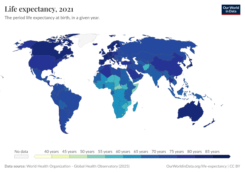 “Data Page: Life expectancy”. Our World in Data (2026). Data adapted from World Health Organization. Retrieved from https://chrome-plugin.owid.pages.dev/grapher/life-expectancy-at-birth-who-gho [online resource]How to cite this data