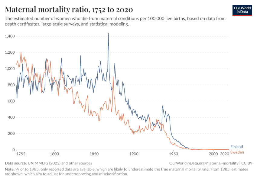 “Data Page: Maternal mortality ratio”, part of the following publication: Max Roser and Hannah Ritchie (2013) - “Maternal Mortality”. Data adapted from UN MMEIG (WHO, UNICEF, UNFPA, World Bank Group and UNDESA/ Population Division), WHO Mortality Database, United Nations, Gapminder. Retrieved from https://chrome-plugin.owid.pages.dev/grapher/maternal-mortality [online resource]How to cite this data