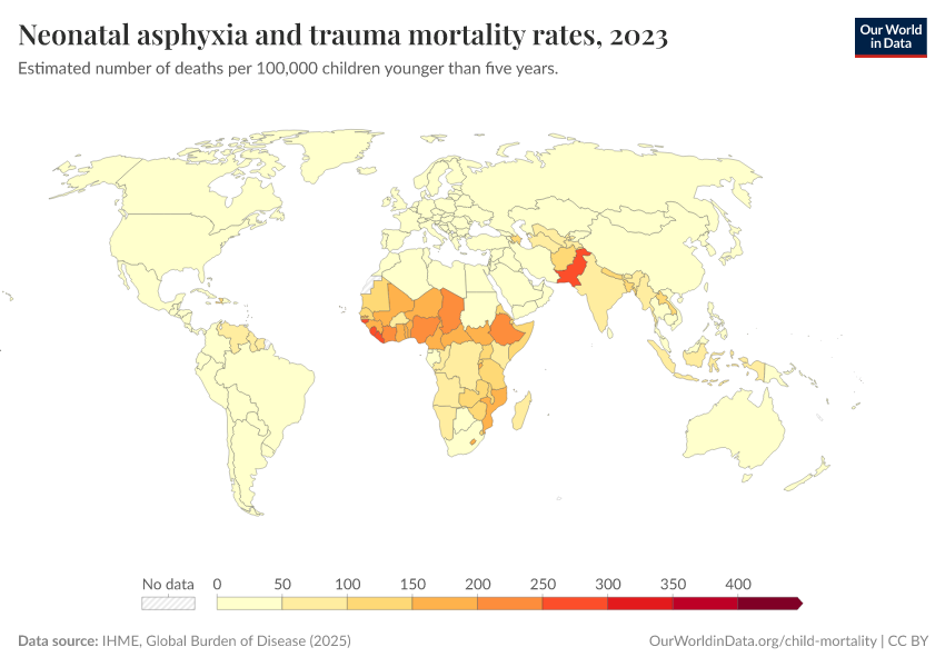 IHME, Global Burden of Disease (2024) – with minor processing by Our World in Data. “Neonatal asphyxia and trauma mortality rates” [dataset]. IHME, Global Burden of Disease, “Global Burden of Disease - Deaths and DALYs” [original data]. Retrieved January 9, 2026 from https://chrome-plugin.owid.pages.dev/grapher/mortality-neonatal-asphyxia-and-trauma