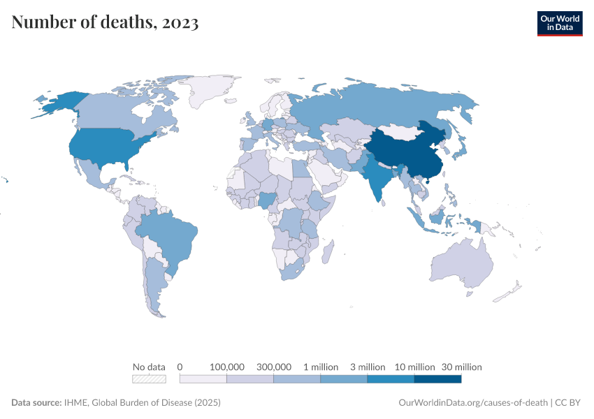 “Data Page: Number of deaths”, part of the following publication: Esteban Ortiz-Ospina and Max Roser (2016) - “Global Health”. Data adapted from IHME, Global Burden of Disease. Retrieved from https://chrome-plugin.owid.pages.dev/grapher/number-of-deaths-gbd [online resource]How to cite this data