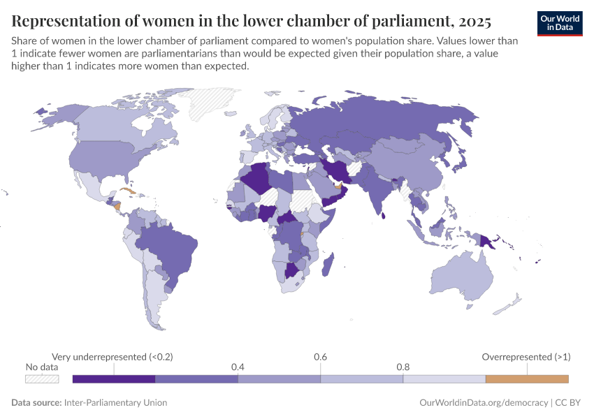 “Data Page: Representation of women in the lower chamber of parliament”. Our World in Data (2026). Data adapted from Inter-Parliamentary Union. Retrieved from https://chrome-plugin.owid.pages.dev/grapher/representation-of-women-in-lower-chamber-of-parliament [online resource]How to cite this data