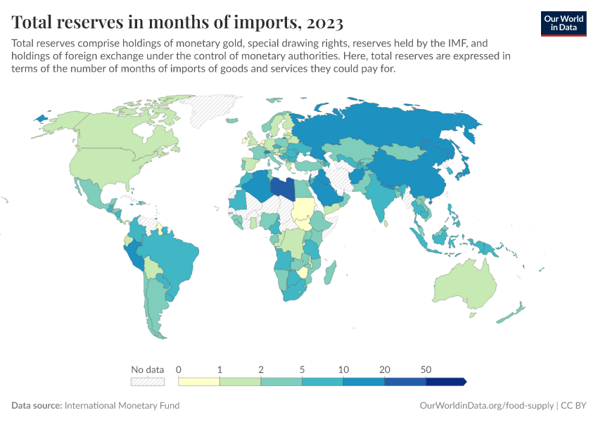 “Data Page: Total reserves in months of imports”. Our World in Data (2026). Data adapted from International Monetary Fund. Retrieved from https://chrome-plugin.owid.pages.dev/grapher/total-reserves-in-months-of-imports [online resource]How to cite this data