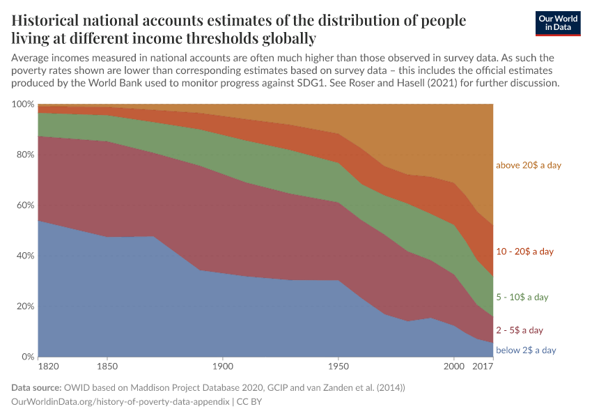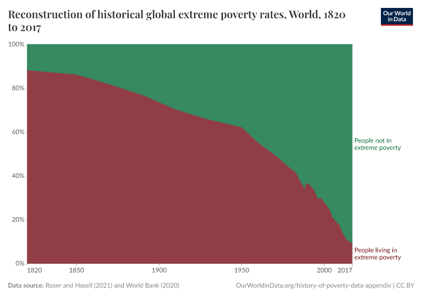 Joe Hasell (2019) - “Data appendix – The fight against global poverty: 200 years of progress and still a very long way to go” Published online at OurWorldinData.org. Retrieved from: 'https://chrome-plugin.owid.pages.dev/history-of-poverty-data-appendix' [Online Resource]BibTeX citation