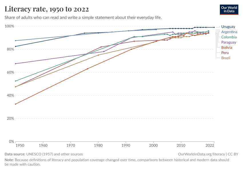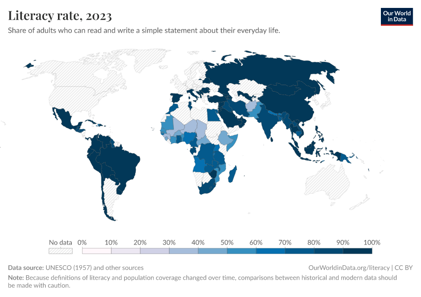 Max Roser and Esteban Ortiz-Ospina (2018) - “Literacy” Published online at OurWorldinData.org. Retrieved from: 'https://chrome-plugin.owid.pages.dev/literacy' [Online Resource]BibTeX citation