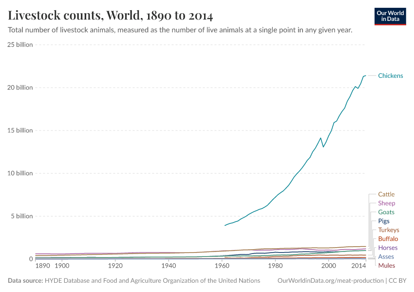 The figures represent 'livestock counts' — these represent the total number of live animals at a given time in any year. This is not to be confused with the figures above which represent the total number of livestock animals slaughtered or used for meat in any given year.
