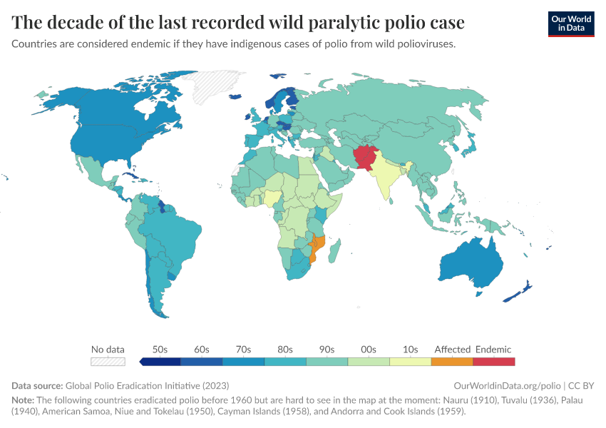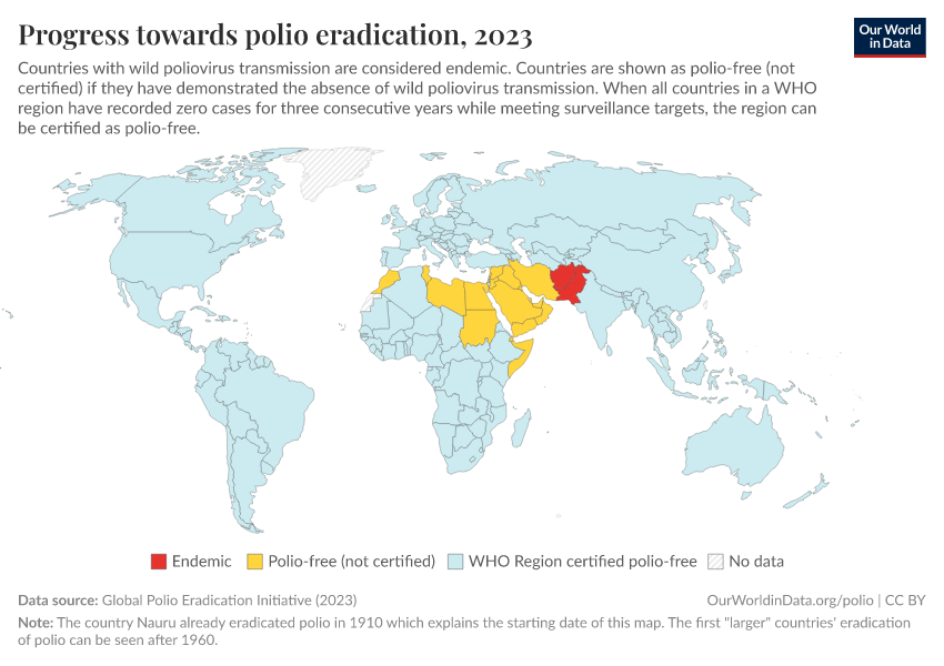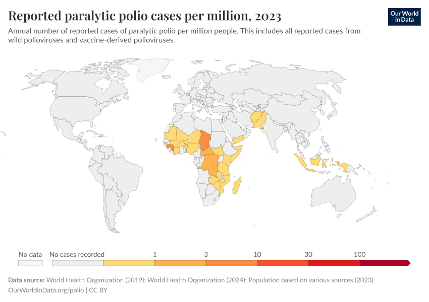 Saloni Dattani, Fiona Spooner, Sophie Ochmann, and Max Roser (2022) - “Polio” Published online at OurWorldinData.org. Retrieved from: 'https://chrome-plugin.owid.pages.dev/polio' [Online Resource]BibTeX citation