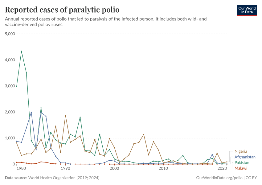 Worryingly, there is the risk that cases are spreading in countries that have been declared free of wild poliovirus. Malawi and Mozambique each reported a case in 2021 and 2022 respectively, after three decades of seeing no cases of wild polio.2