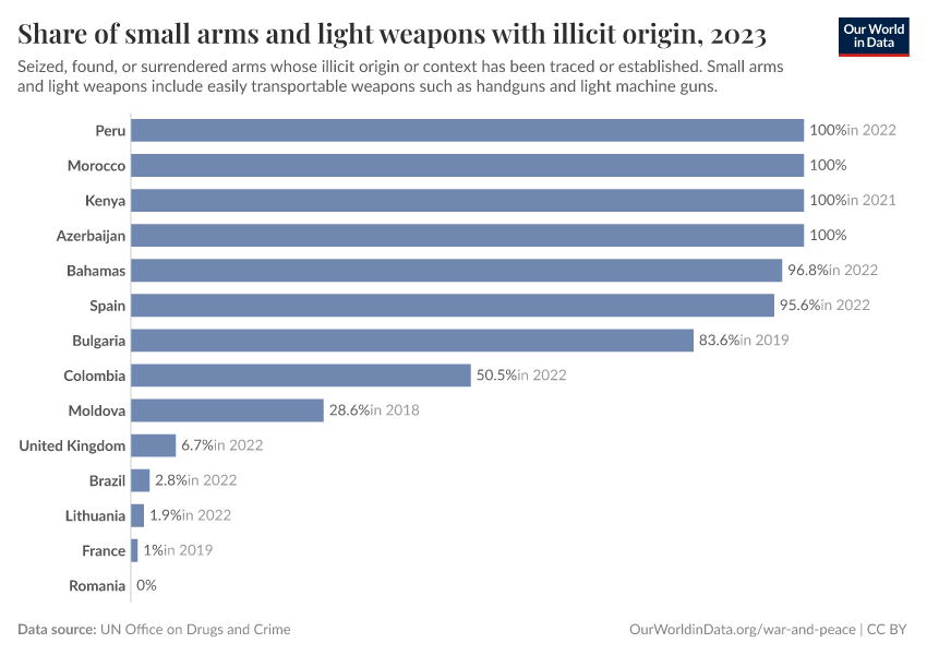Definition of the SDG indicator: Indicator 16.4.2 is the “proportion of seized, found or surrendered arms whose illicit origin or context has been traced or established by a competent authority in line with international instruments” in the UN SDG framework.