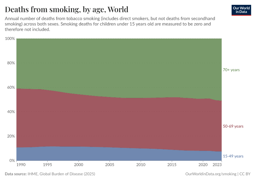 Most deaths from smoking occur in older populations
