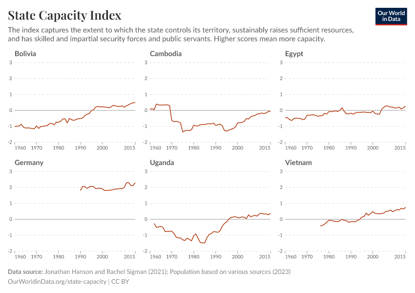 Bastian Herre and Pablo Arriagada (2023) - “State Capacity” Published online at OurWorldinData.org. Retrieved from: 'https://chrome-plugin.owid.pages.dev/state-capacity' [Online Resource]BibTeX citation