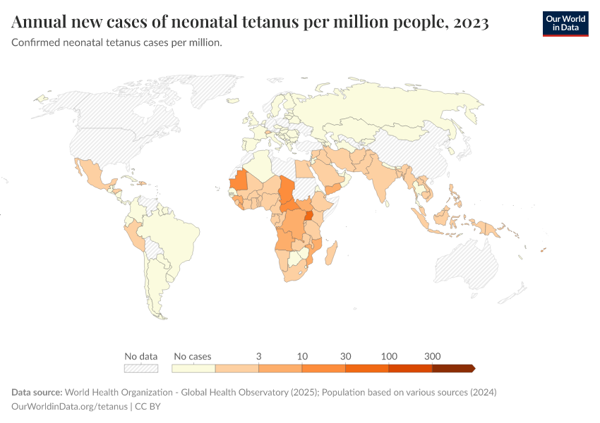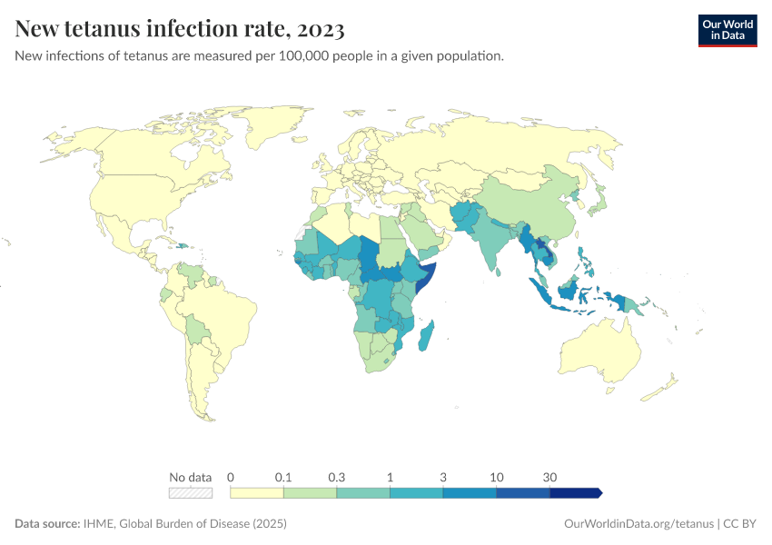 Hannah Behrens, Sophie Ochmann, Bernadeta Dadonaite, and Max Roser (2019) - “Tetanus” Published online at OurWorldinData.org. Retrieved from: 'https://chrome-plugin.owid.pages.dev/tetanus' [Online Resource]BibTeX citation