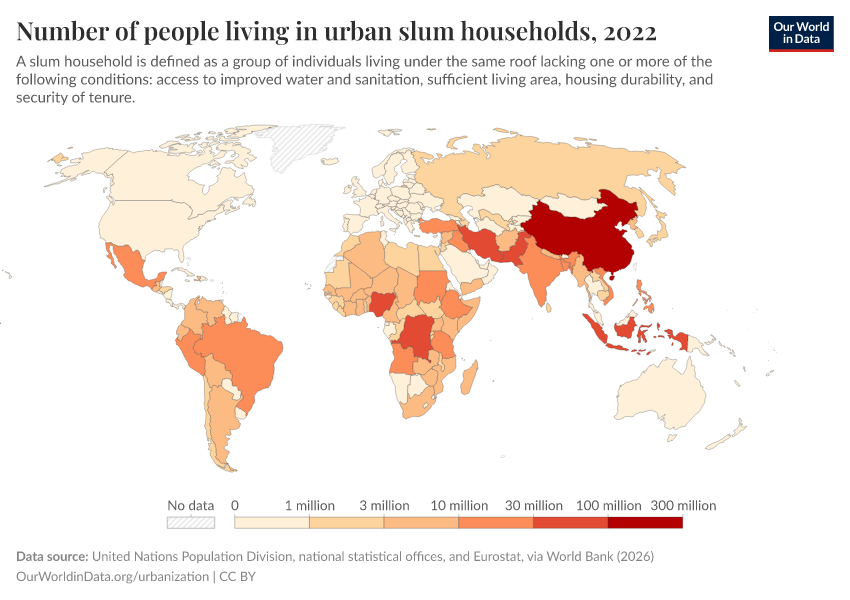 The most recent global estimates suggest just under 1-in-4 people in urban areas live in slum households.
