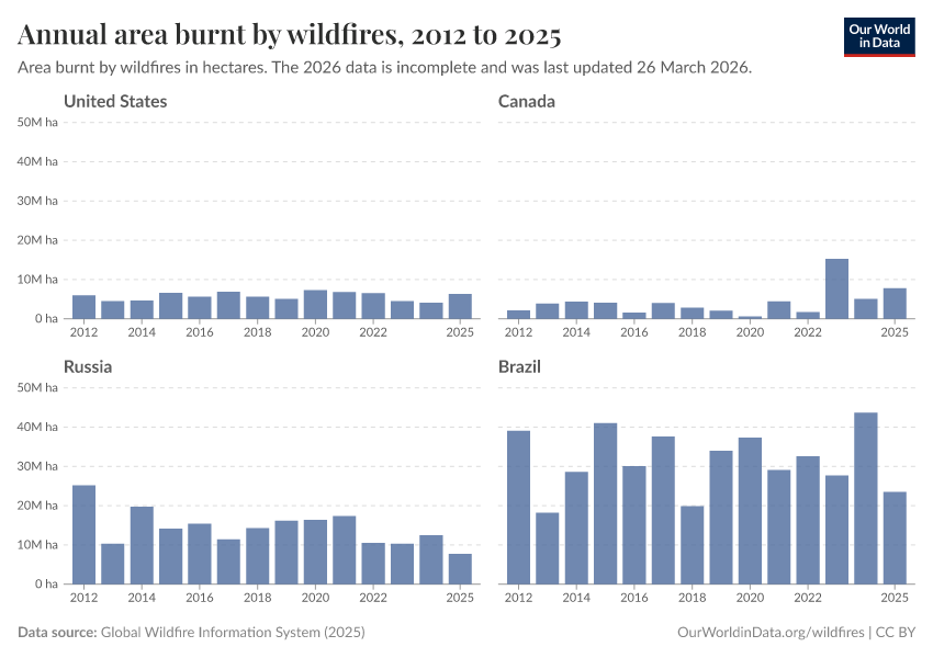 Veronika Samborska and Hannah Ritchie (2024) - “Wildfires” Published online at OurWorldinData.org. Retrieved from: 'https://chrome-plugin.owid.pages.dev/wildfires' [Online Resource]BibTeX citation
